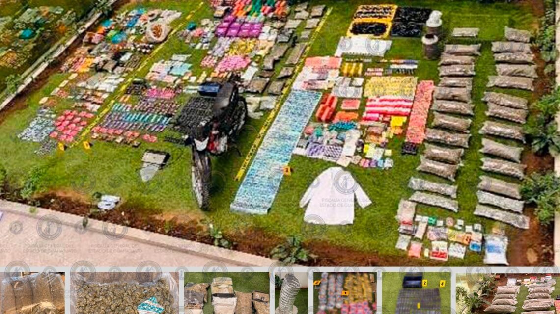 Asimismo, se encontraron múltiples bolsas y envoltorios con hierba verde y seca, tanto en presentación de flor como pulverizada, además de bolsas herméticas y otros instrumentos presuntamente utilizados para la distribución de droga.
