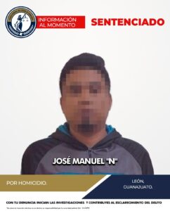 León, Gto., a 19 de agosto del 2025.- La Fiscalía General del Estado (FGE) logró que un juez dictara una sentencia condenatoria de 16 años y seis meses de prisión contra José Manuel “N”, tras ser hallado culpable del delito de homicidio por hechos ocurridos la noche del 21 de mayo de 2023 en León, Guanajuato.