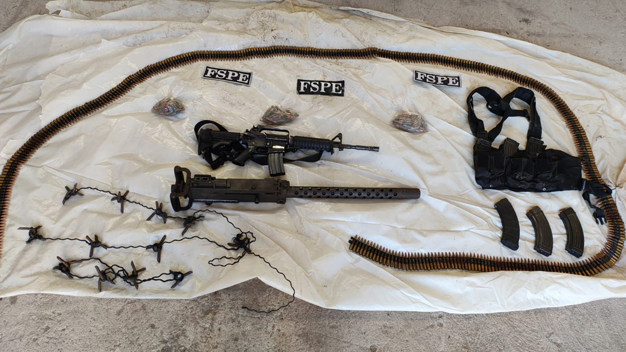 Salamanca, Gto., a 12 de marzo del 2025.- En un operativo conjunto, la Secretaría de Seguridad y Paz, en coordinación con fuerzas federales, aseguró un predio en la comunidad San Vicente de Flores, en Salamanca, Guanajuato. En el lugar se localizaron armas de alto poder, incluyendo una ametralladora Browning capaz de penetrar blindajes, así como diversos vehículos con posibles indicios delictivos.