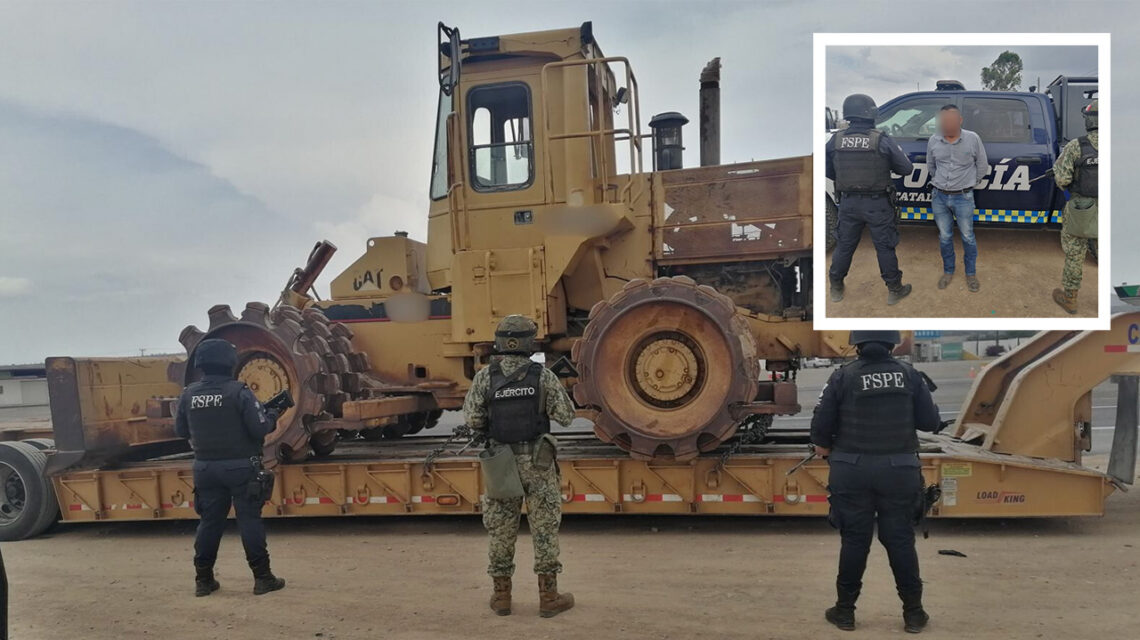 El operativo se realizó sobre la Carretera Federal 57, a la altura del entronque con la vía estatal que conduce a San Diego de la Unión. Durante el patrullaje, personal operativo se percató de un tractocamión que transportaba maquinaria pesada, por lo que se procedió a su revisión.