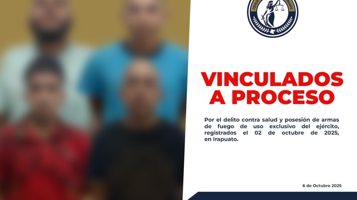 Los cuatro hombres fueron puestos a disposición del Ministerio Público por los delitos de posesión simple de droga y posesión de armas de fuego de uso exclusivo del Ejército. Durante la audiencia, un juez calificó como legal la detención y decidió vincularlos a proceso, imponiendo prisión preventiva oficiosa mientras continúa la investigación.