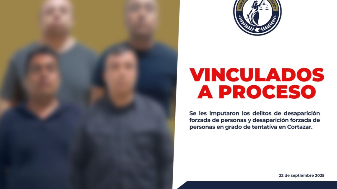 Cortazar, Gto., a 22 de septiembre del 2025.- La Fiscalía General del Estado de Guanajuato, en coordinación con la Secretaría de Seguridad y Paz, detuvo a cuatro elementos de la Policía Municipal de Cortazar por su presunta participación en la desaparición forzada de cinco personas.