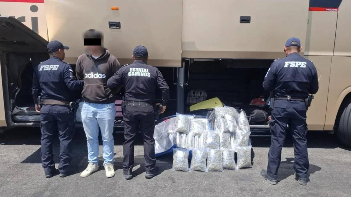 Guanajuato, Gto., a 12 de abril del 2026.- Más de 23 mil dosis de droga con características de marihuana fueron aseguradas por elementos de la Policía Estatal de Caminos durante la revisión de un autobús de pasajeros en la carretera federal Morelia–Valtierrilla. La acción derivó en la detención de un hombre.