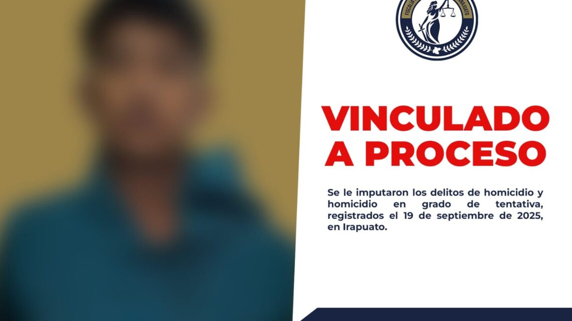 Irapuato, Gto., a 30 de octubre del 2025.- La Fiscalía General del Estado de Guanajuato (FGE) logró el esclarecimiento de un doble homicidio y un intento de homicidio ocurridos en el municipio de Irapuato, tras la captura de Miguel Ángel “N”, señalado como presunto responsable de los hechos.