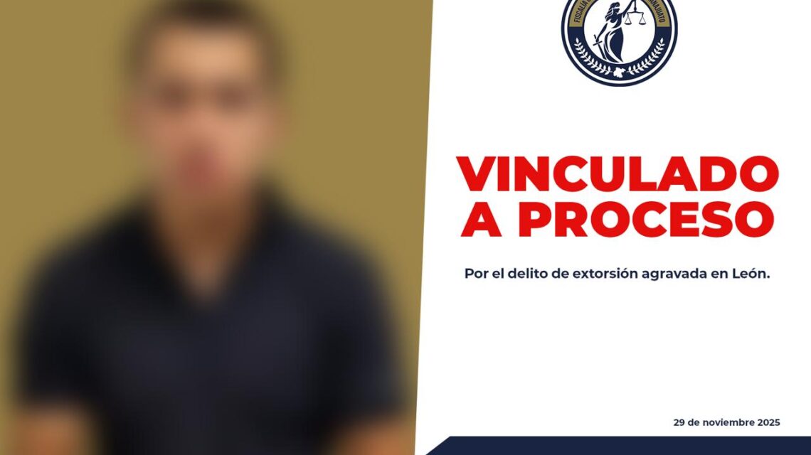León, Gto., a 29 de noviembre del 2025.- La Fiscalía General del Estado de Guanajuato informó la identificación, aprehensión y vinculación a proceso de un joven de 19 años, identificado como Luis Gerardo “N”, por su presunta participación en extorsión agravada en un establecimiento del centro de León.
