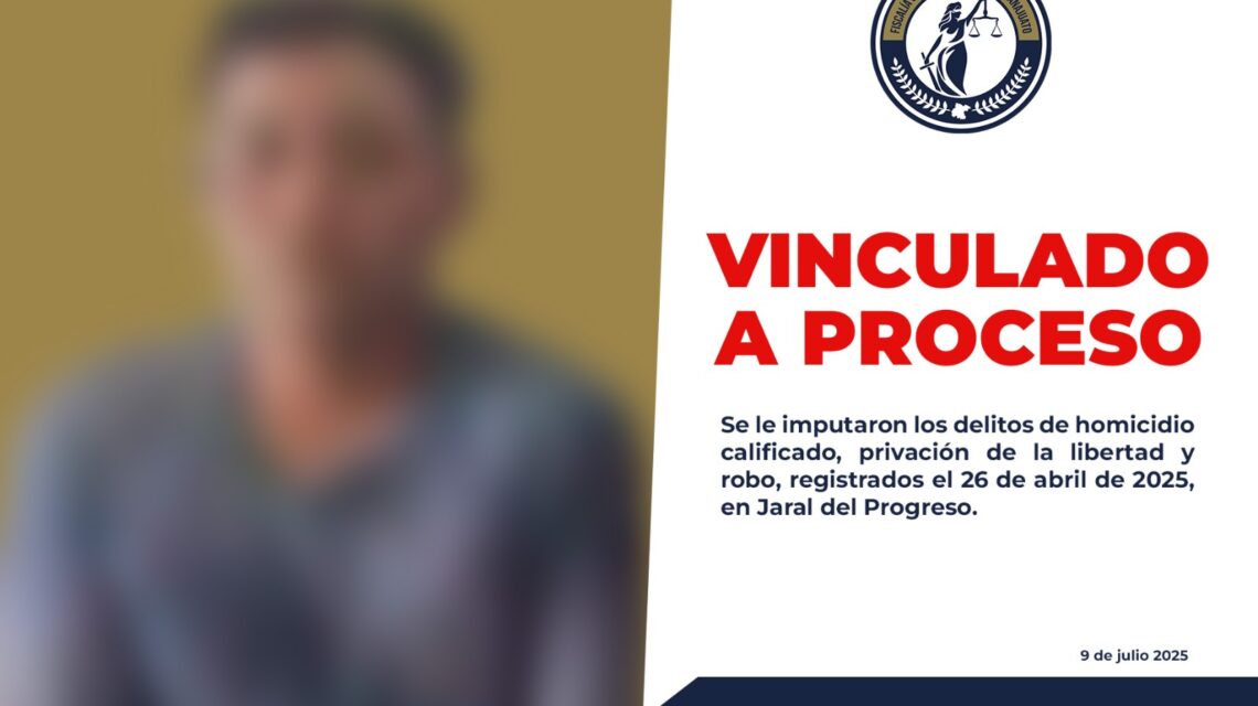 Jaral del Progreso, Gto., a 10 de julio del 2025.- La Fiscalía General del Estado informó sobre la detención de SABINO “N”, presunto implicado en el homicidio registrado el pasado 26 de abril en Jaral del Progreso. Este arresto se suma al de YULIAN “N”, detenido con anterioridad por los mismos hechos, que incluyen privación de la libertad y robo de una motocicleta.