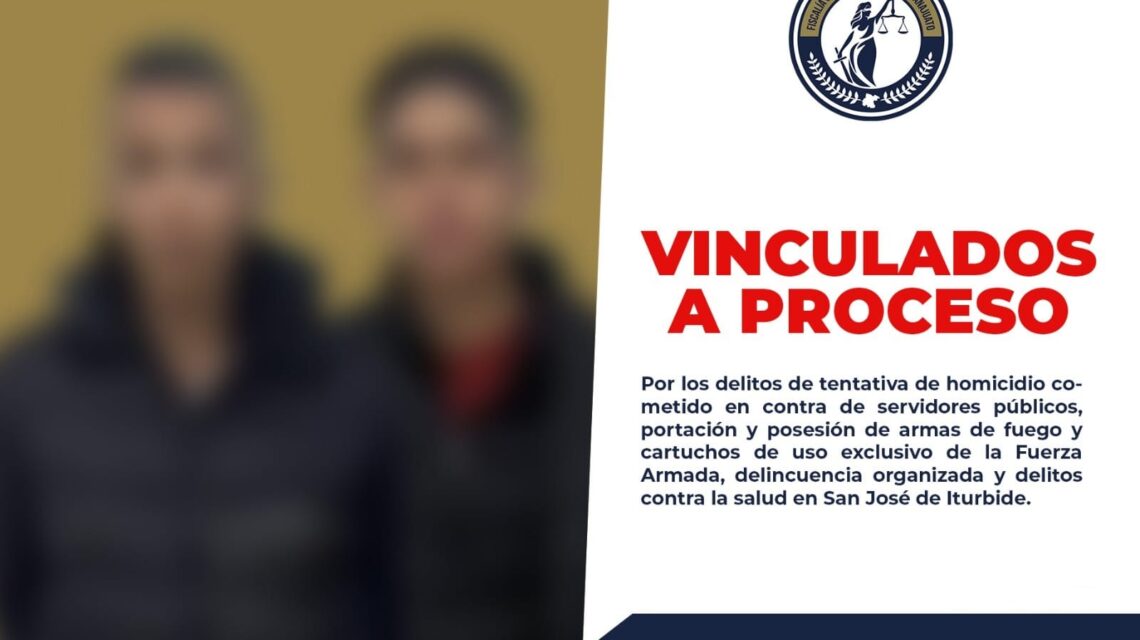 San José Iturbide, Gto., a 11 de diciembre del 2025.- La Fiscalía General del Estado (FGE) de Guanajuato logró la vinculación a proceso de ALDO FABIÁN “N” y ÉDGAR ERNESTO “N” tras un operativo en San José de Iturbide, donde ambos fueron detenidos por agredir con armas de fuego a agentes de la Investigación Criminal. La intervención permitió el aseguramiento de un arsenal de alto poder utilizado presuntamente por un grupo delictivo.