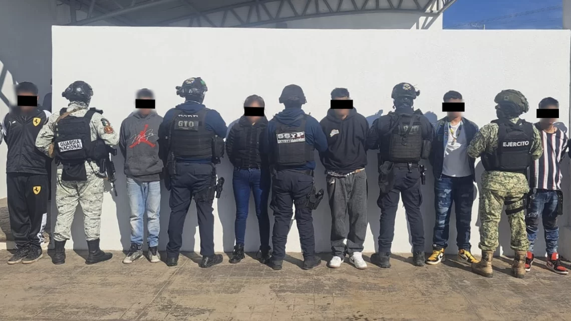 Las personas detenidas y vinculadas a proceso son Ian Aldair “N”, de 19 años, originario de Manzanillo, Colima, y José Ángel “N”, de 22 años, originario de Villahermosa, Tabasco. Además, se aseguraron cuatro personas originarias de Irapuato: Diego Ulises “N”, de 29 años; Edwuim Alejandro “N”, de 24 años; Mario Antonio “N”, de 20 años; e Isis Monserrat “N”, de 24 años, con domicilios en diversas colonias del municipio.