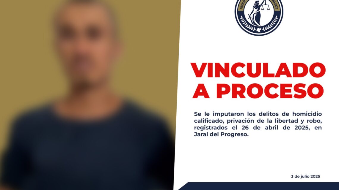 Jaral del Progreso, Gto., a 03 de julio del 2025.- Agentes de Investigación Criminal de la Fiscalía General del Estado cumplimentaron una orden de aprehensión contra Yulian “N”, señalado por su probable participación en la privación ilegal de la libertad, homicidio calificado y robo calificado en el municipio de Jaral del Progreso.