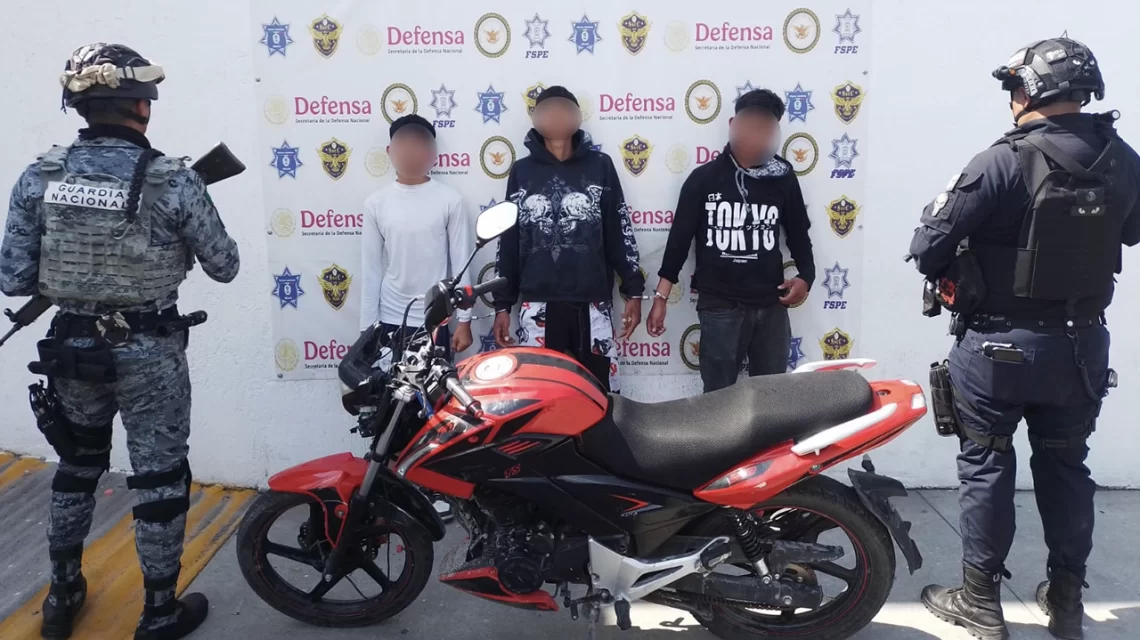 La intervención culminó a la altura del camino a San José de Guanajuato, donde fueron localizados y detenidos tres adolescentes identificados como Mauricio “N”, Luis Alejandro “N” y Armando “N”, de 15 y 16 años de edad. En el lugar también se aseguró una motocicleta Italika color rojo presuntamente utilizada en el hecho.