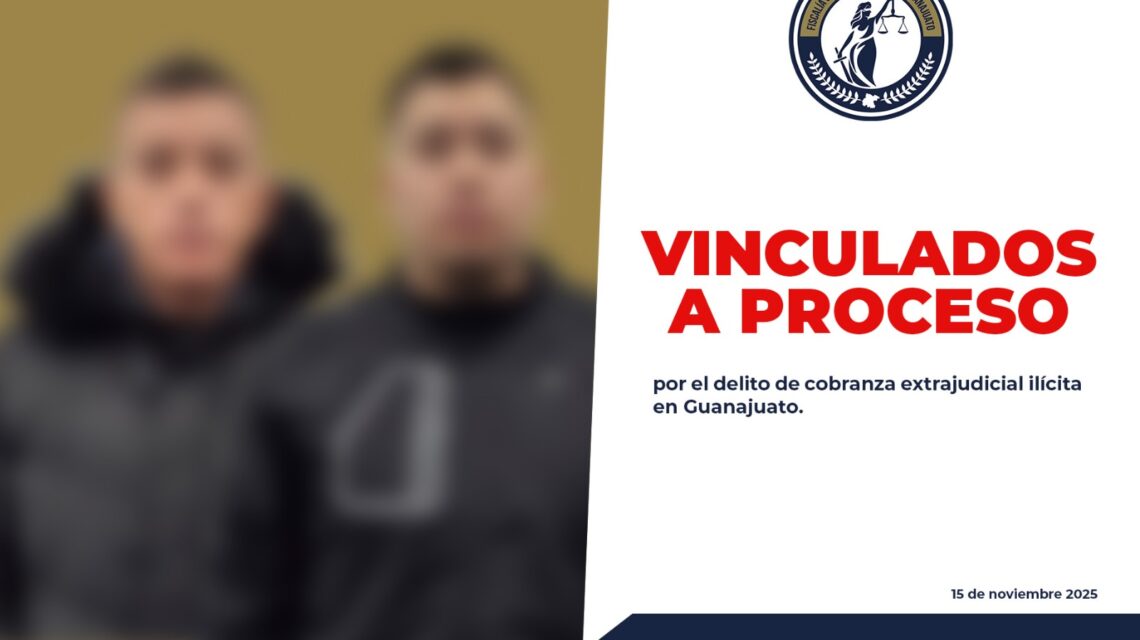 Guanajuato, Gto., a 15 de noviembre del 2025.- La Fiscalía General del Estado de Guanajuato (FGEG) consiguió la vinculación a proceso de dos sujetos de origen colombiano, identificados como Cristian Camilo “N” y Jesús Danilo “N”, tras ser señalados por su probable participación en cobranza extrajudicial en la ciudad de Guanajuato.