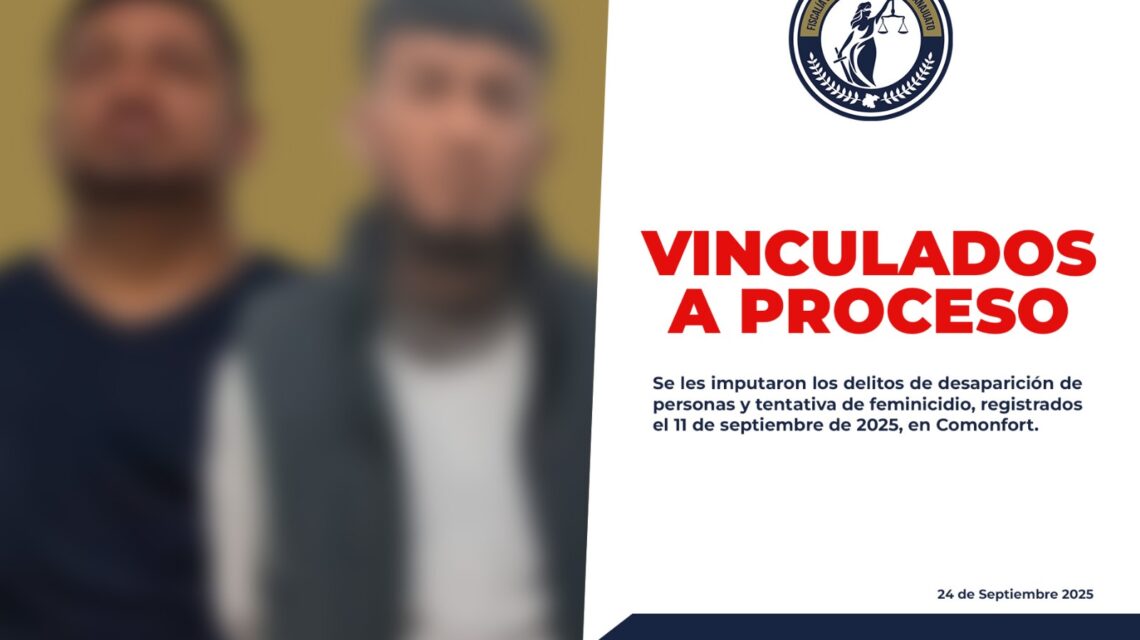 Comonfort, Gto., a 24 de septiembre del 2025.- La Fiscalía de Comonfort informó la detención de Santiago “N” y José Rafael “N”, investigados por desaparición de personas y tentativa de feminicidio. Los hechos se registraron el pasado 11 de septiembre de 2025, cuando una mujer denunció haber sido víctima de violencia extrema a manos de los imputados.