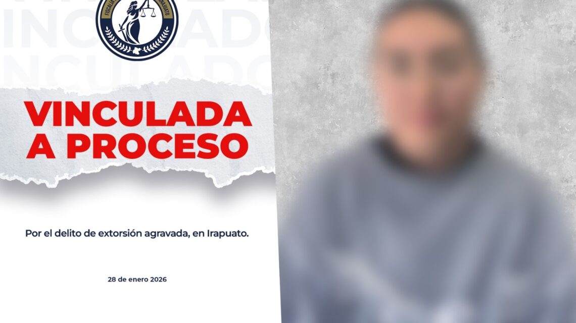 Irapuato, Gto., a 28 de enero del 2026.- La Fiscalía General del Estado de Guanajuato (FGEG) informó que Jennifer de la Luz “N” fue vinculada a proceso por su probable participación en el delito de extorsión agravada en Irapuato.