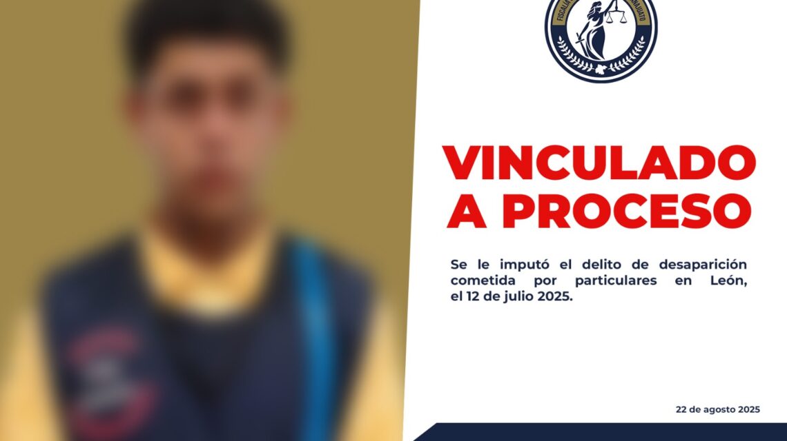 León, Gto., a 25 de agosto del 2025.- La Fiscalía General del Estado de Guanajuato informó la detención y vinculación a proceso de LUIS ARTURO “N”, presunto responsable del delito de desaparición cometida por particulares en León.