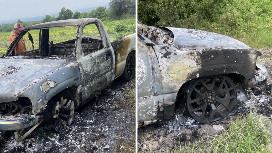 Celaya, Gto., a 15 de julio del 2025.- Un hecho alarmante se registró la tarde de este martes en la comunidad El Puesto, al sur del municipio de Celaya, donde fue localizada una camioneta completamente calcinada con restos humanos en su interior.