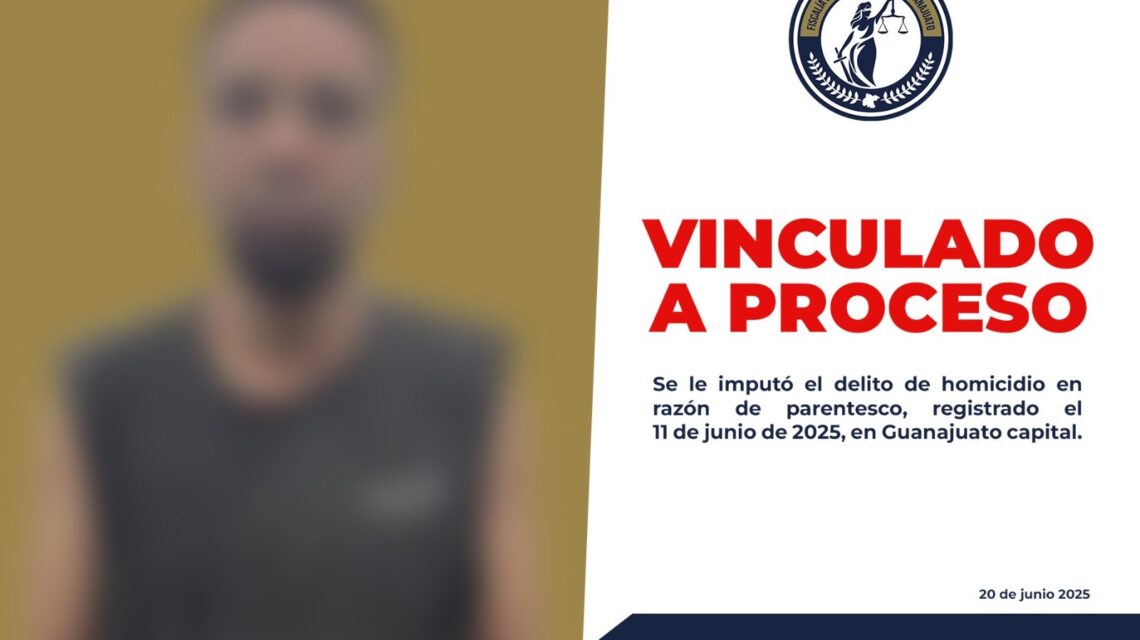 Guanajuato, Gto., a 20 de junio del 2025.- La Fiscalía General del Estado de Guanajuato obtuvo la vinculación a proceso penal de un hombre de 30 años, identificado como Cristian Manuel “N”, por su probable responsabilidad en el homicidio de su padre, ocurrido el pasado 11 de junio en la localidad de Paso de Perules, en el municipio de Guanajuato. El imputado enfrenta cargos por el delito de homicidio en razón de parentesco y se encuentra en prisión preventiva.