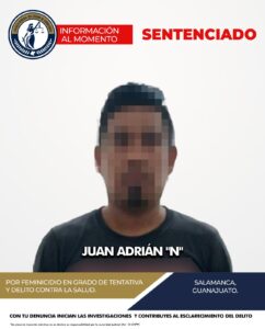 Salamanca, Gto., a 27 de junio del 2025.- Un hombre identificado como Juan Adrián “N” fue sentenciado a 13 años de prisión por el intento de feminicidio de una mujer en Salamanca, Guanajuato, así como por posesión de drogas con fines de venta. La condena fue dictada tras un procedimiento de juicio abreviado, en el que el acusado aceptó su responsabilidad en ambos delitos.