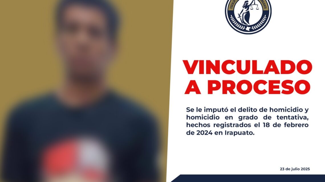 Irapuato, Gto., a 23 de julio del 2025.- La Fiscalía General del Estado de Guanajuato informó que Luis Brayan “N” ha sido vinculado a proceso penal por su probable responsabilidad en los delitos de homicidio y homicidio en grado de tentativa, derivados de un ataque armado ocurrido el 18 de febrero de 2024 en la ciudad de Irapuato.