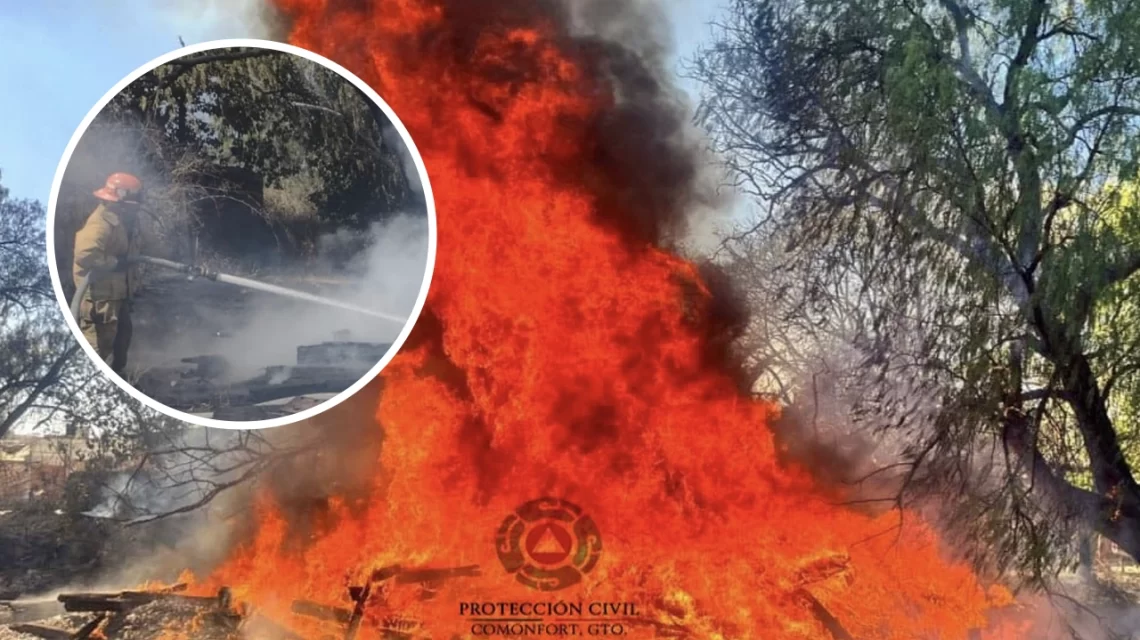 Comonfort, Gto., a 23 de febrero del 2026.- La tarde de este lunes, alrededor de las 14:00 horas, se registró un incendio en la comunidad de Empalme Escobedo, específicamente en la Privada Embarcadero, a un costado de las vías del ferrocarril.