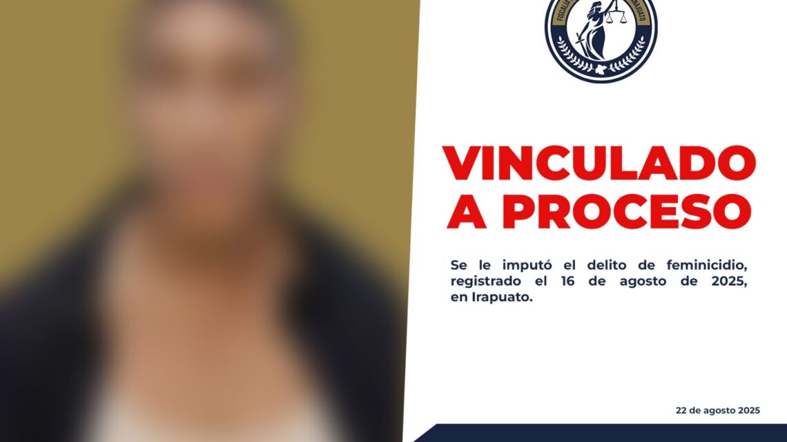 Irapuato, Gto., a 24 de agosto del 2025.- La Fiscalía General del Estado informó que un Juez de Control vinculó a proceso a HÉCTOR ABEL “N” por su probable responsabilidad en el delito de feminicidio, ocurrido en la ciudad de Irapuato.