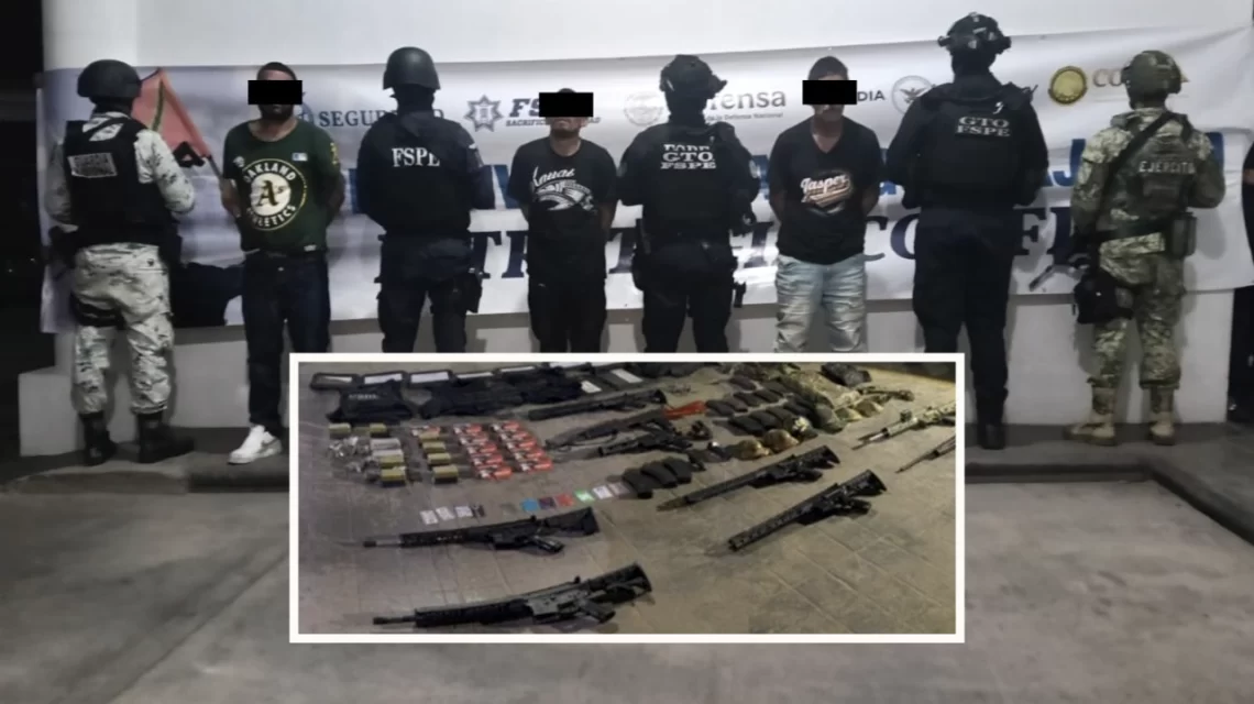 Autoridades de Guanajuato detuvieron a tres presuntos criminales en Villagrán durante un operativo CONFIA. El aseguramiento incluyó armas, vehículos y equipo táctico.