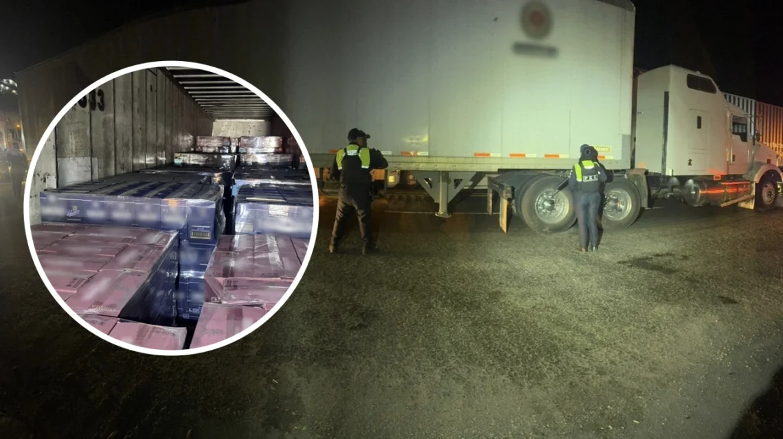 Los oficiales localizaron un semirremolque tipo caja seca blanco transportando 38 tarimas de tequila. Durante la inspección, se descubrió que la caja estaba acoplada a un tractocamión diferente al original, presuntamente para continuar con el robo. La unidad se encontraba abandonada y con la puerta abierta.
