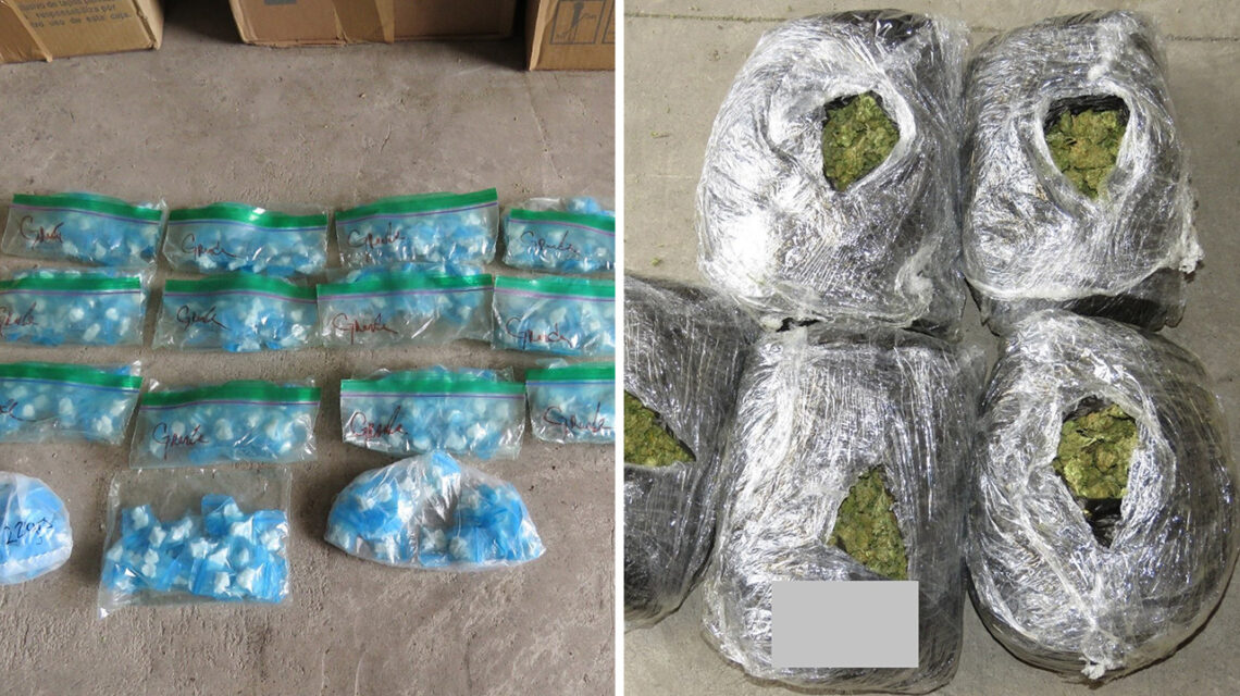 Durante el operativo también fueron confiscados siete kilos 63 gramos de clorhidrato de metanfetamina, 748 gramos de cocaína, papel arroz, dos armas cortas, un cargador, ocho casquillos percutidos, cuatro cartuchos útiles, una máquina contadora de billetes, dos radios de comunicación, tres básculas y mil 126 pesos en efectivo.