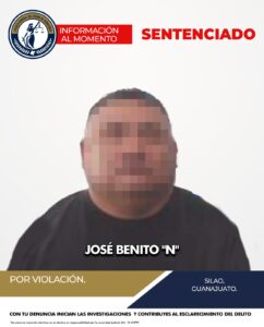 Silao, Gto., a 23 de junio del 2025.- Un hombre fue sentenciado a siete años de prisión por el delito de violación cometido en el municipio de Silao. La Fiscalía General del Estado de Guanajuato, a través del Centro de Justicia para las Mujeres (CJM), logró acreditar su responsabilidad tras una investigación exhaustiva iniciada en 2022.