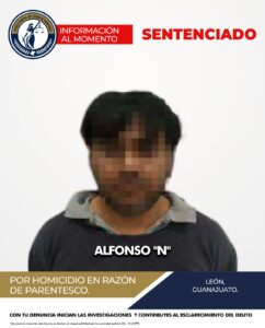 León, Gto., a 21 de junio del 2025.- La Fiscalía General del Estado de Guanajuato logró que un hombre acusado de asesinar a su padre fuera sentenciado a 16 años y 8 meses de prisión, por el delito de homicidio en razón de parentesco. El crimen ocurrió el 26 de diciembre de 2024, en la colonia Villas de San Isidro, en la ciudad de León.