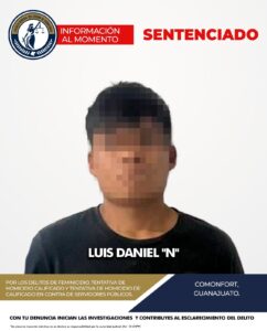 Comonfort, Gto., a 01 de agosto del 2025.- La Fiscalía General del Estado de Guanajuato informó que un juez dictó una sentencia condenatoria de 58 años y 4 meses de prisión en contra de Luis Daniel “N”, tras ser declarado culpable de feminicidio, tentativa de homicidio calificado y tentativa de homicidio en contra de servidores públicos. La resolución se emitió luego de un procedimiento abreviado, respaldado por una minuciosa revisión de las pruebas presentadas por la Fiscalía.