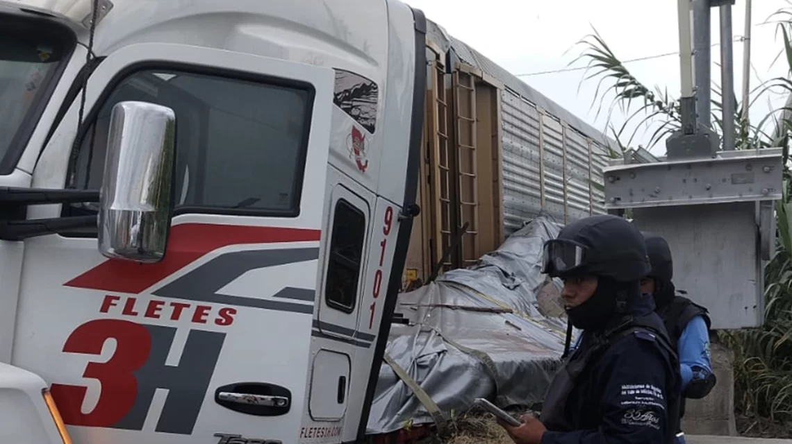 De acuerdo con reportes preliminares, el tráiler circulaba sobre la carretera lateral a Celaya cuando intentó cruzar las vías férreas y fue alcanzado por una locomotora que transitaba a gran velocidad. El fuerte impacto provocó daños considerables en la unidad y el desprendimiento parcial de la carga que transportaba.