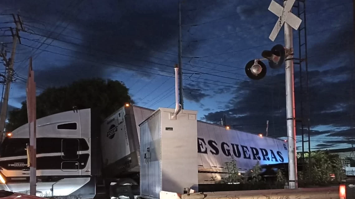 Tráiler queda atorado en vías del tren y provoca fuerte congestionamiento en Celaya