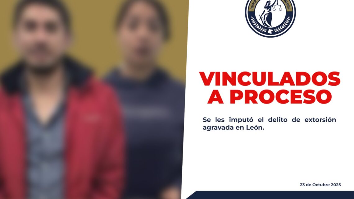 La Fiscalía de Guanajuato vinculó a proceso a Sergio Eduardo “N” y Diana Ivonne “N” por extorsión agravada en León. Se les dictó prisión preventiva mientras continúa la investigación.