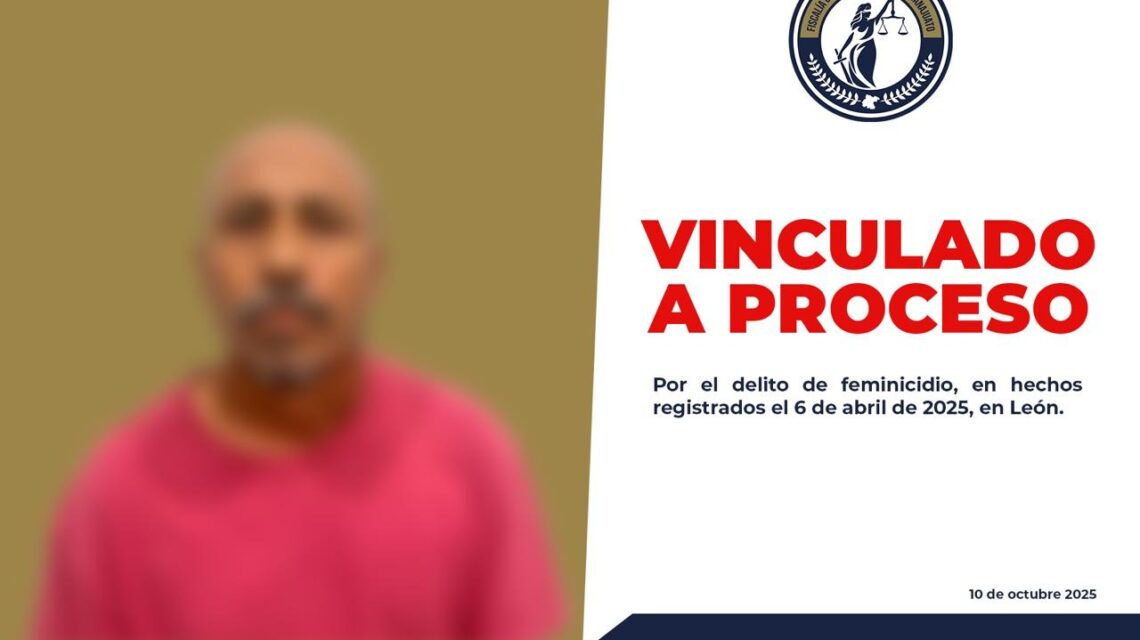 León, Gto., a 11 de octubre del 2025.- La Fiscalía General del Estado, a través del Ministerio Público, logró la vinculación a proceso de Juan Manuel Remedios “N”, señalado como probable responsable del feminicidio ocurrido el pasado 6 de abril de 2025 en esta ciudad.