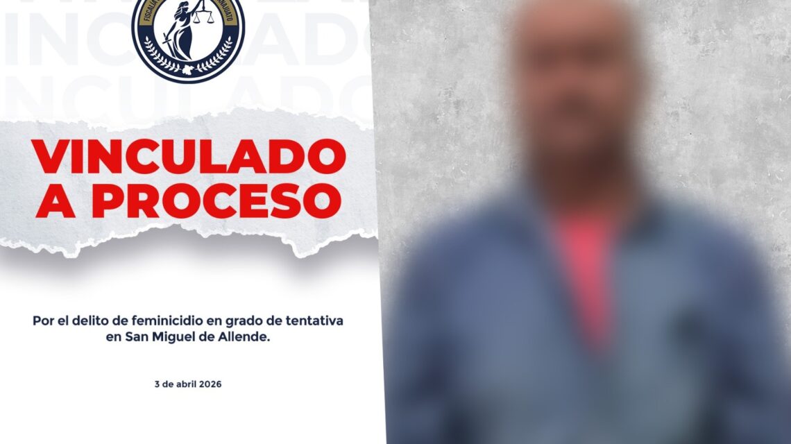 San Miguel de Allende, Gto., a 03 de abril del 2026.- La Fiscalía General del Estado de Guanajuato (FGE) logró la vinculación a proceso penal de un hombre identificado como JUAN “N”, por su presunta responsabilidad en el delito de feminicidio en grado de tentativa, ocurrido en San Miguel de Allende.