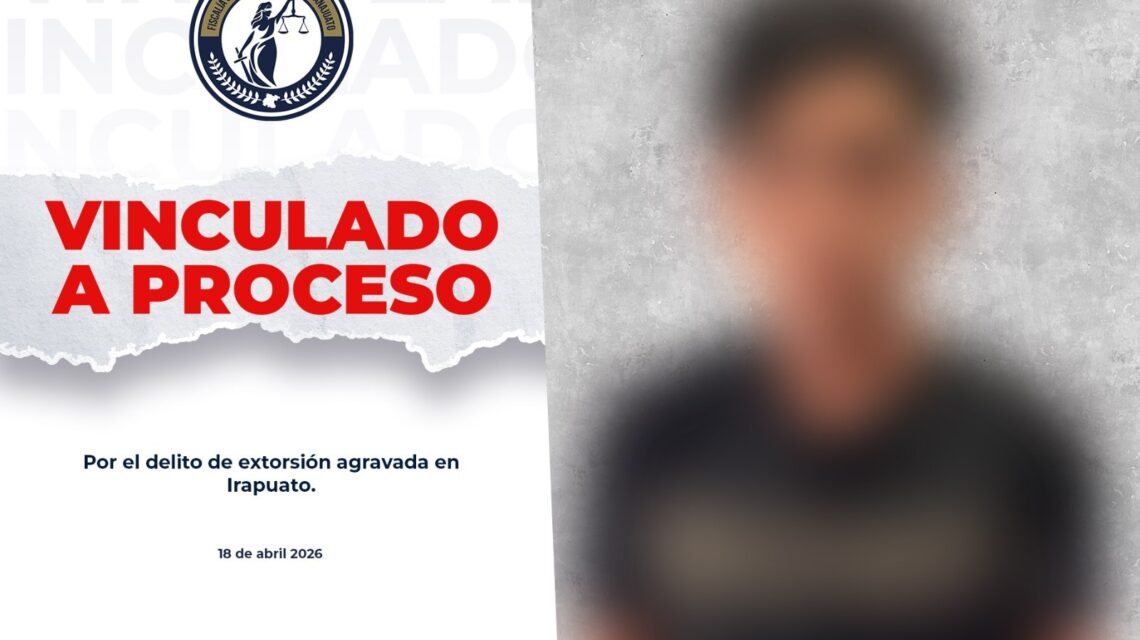 Irapuato, Gto., a 18 de abril del 2026.- La Fiscalía General del Estado de Guanajuato (FGEG) informó la obtención de la vinculación a proceso de Bryan Emmanuel “N”, señalado por su probable responsabilidad en el delito de extorsión agravada en agravio de un centro de rehabilitación ubicado en la colonia Las Eras, tercera sección, en el municipio de Irapuato.