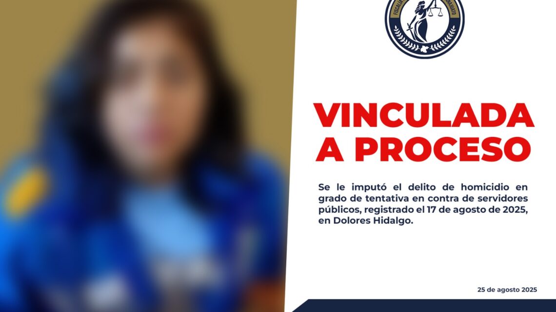 Dolores Hidalgo C.I.N., Gto., a 25 de agosto del 2025.- La Fiscalía General del Estado logró la vinculación a proceso penal de Adriana Andrea “N”, señalada como responsable de agredir a policías municipales durante una persecución registrada el 17 de agosto de 2025 en Dolores Hidalgo.