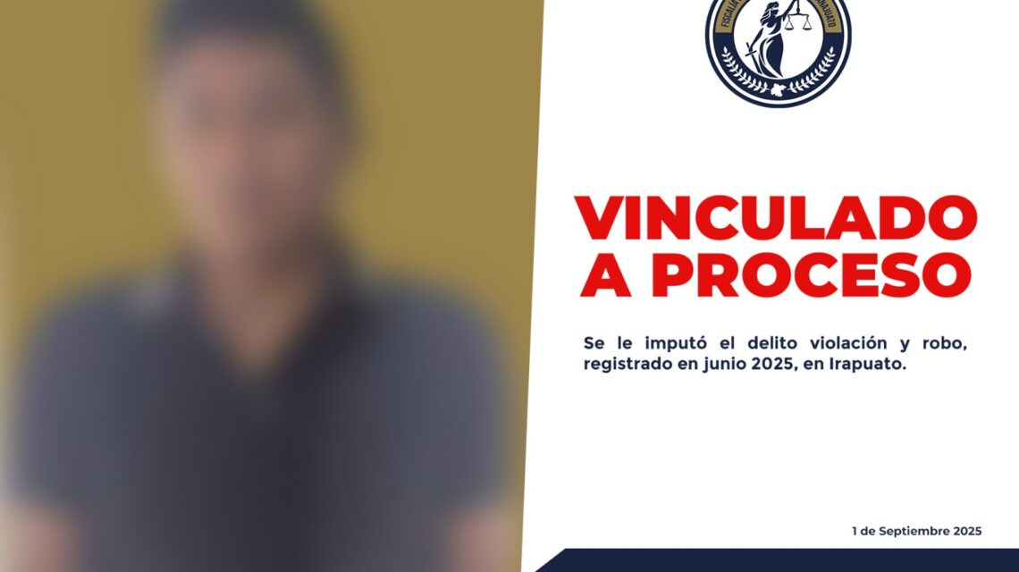 Irapuato, Gto., a 01 de septiembre del 2025.- La Fiscalía General del Estado de Guanajuato, mediante el Centro de Justicia para las Mujeres (CJM), esclareció un caso de violencia sexual y robo ocurrido en Irapuato, logrando que el responsable fuera vinculado a proceso penal y quede bajo prisión preventiva.
