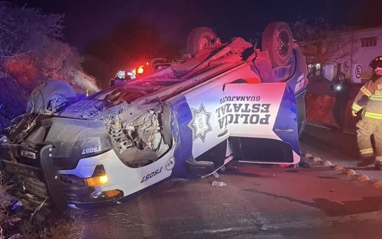 Una unidad de las FSPE volcó sobre la carretera Guanajuato–Juventino Rosas durante la madrugada. Tres elementos resultaron lesionados y ya se investigan las causas del accidente.