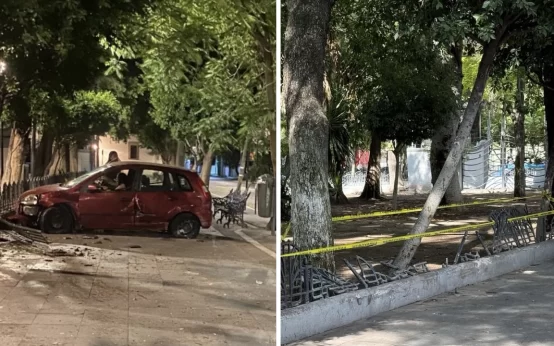 Conductor se impacta contra bancas y jardinera en Alameda Hidalgo de Celaya; se fuga dejando a su acompañante lesionada