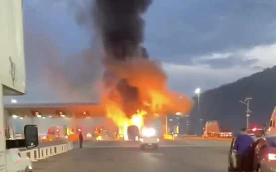 Incendio de autobús en la caseta de Acatlán paraliza la autopista Guadalajara-Colima