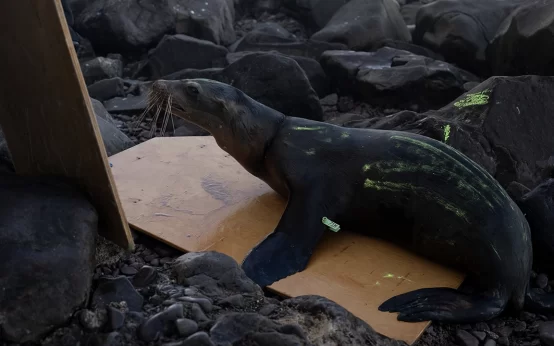 Rescatan a lobos marinos atrapados en redes de pesca en Isla Consag