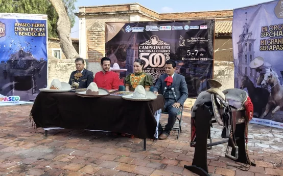 Apaseo El Grande anunció el Campeonato Nacional Charro “500 Años”, que reunirá a equipos destacados del país del 5 al 7 de diciembre. El evento ofrecerá competencias, escaramuzas y espectáculos musicales con una asistencia estimada de más de 5 mil personas.