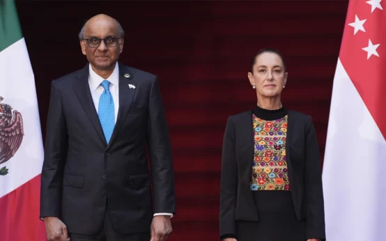 Claudia Sheinbaum recibe en Palacio Nacional al presidente de Singapur