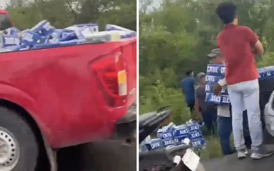 Camión cargado de cerveza vuelca en Chetumal y desata rapiña masiva